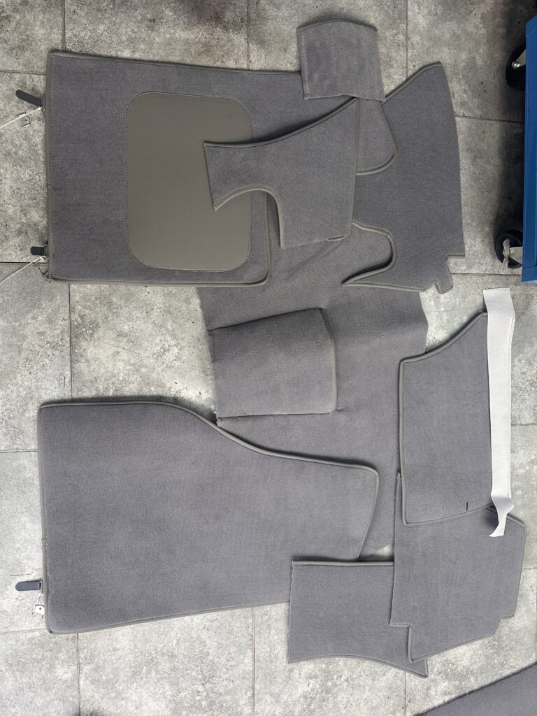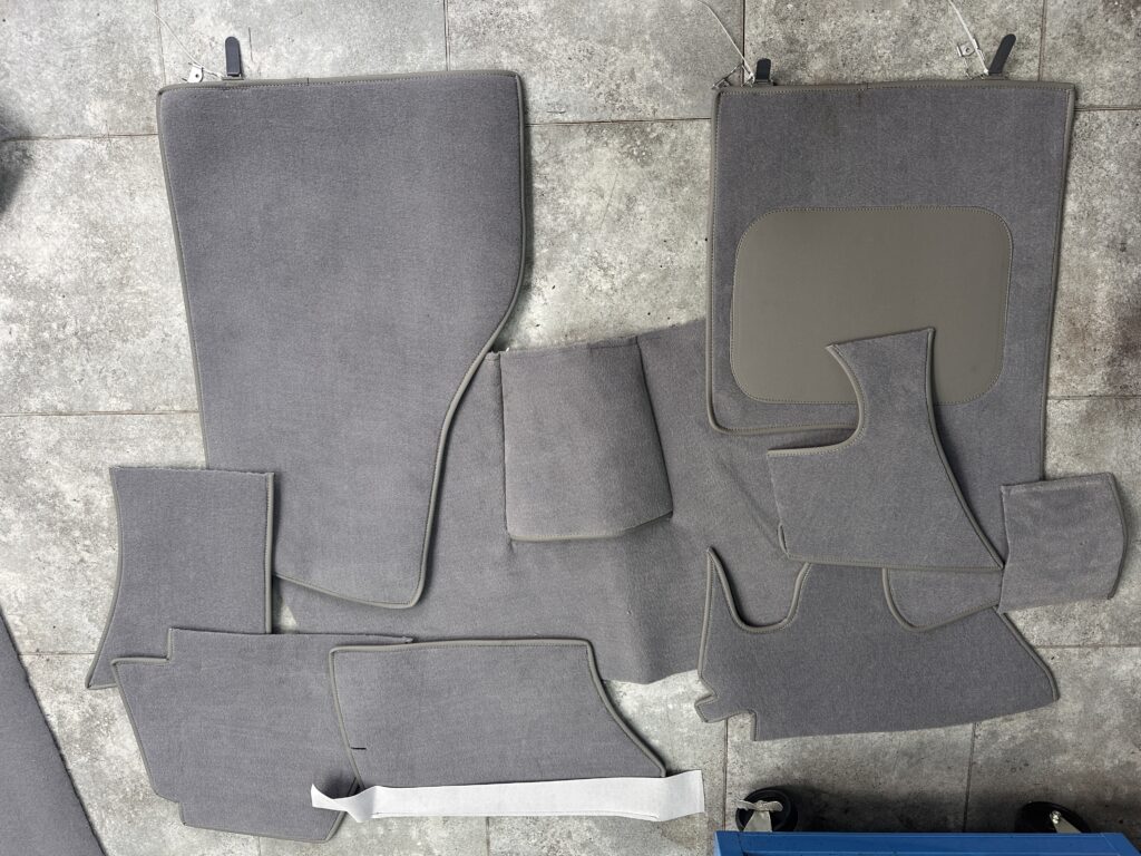 For sale, complete new carpet set specifically for Citroen DS fitted with the “Chausson” factory air conditioning system. This is for cars manufactured between September 1969 and April 1975 (last dashboard.)