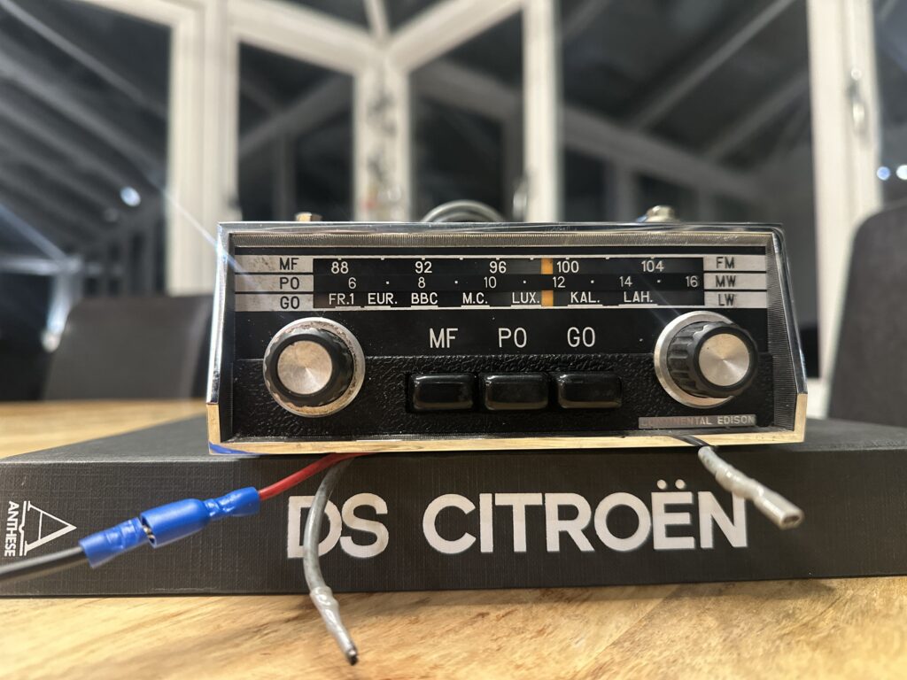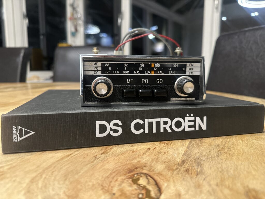 For sale, rare Citroen DS /ID specific radio by Continental Edison. This is the model 354 with the MF, PO, GO buttons.
